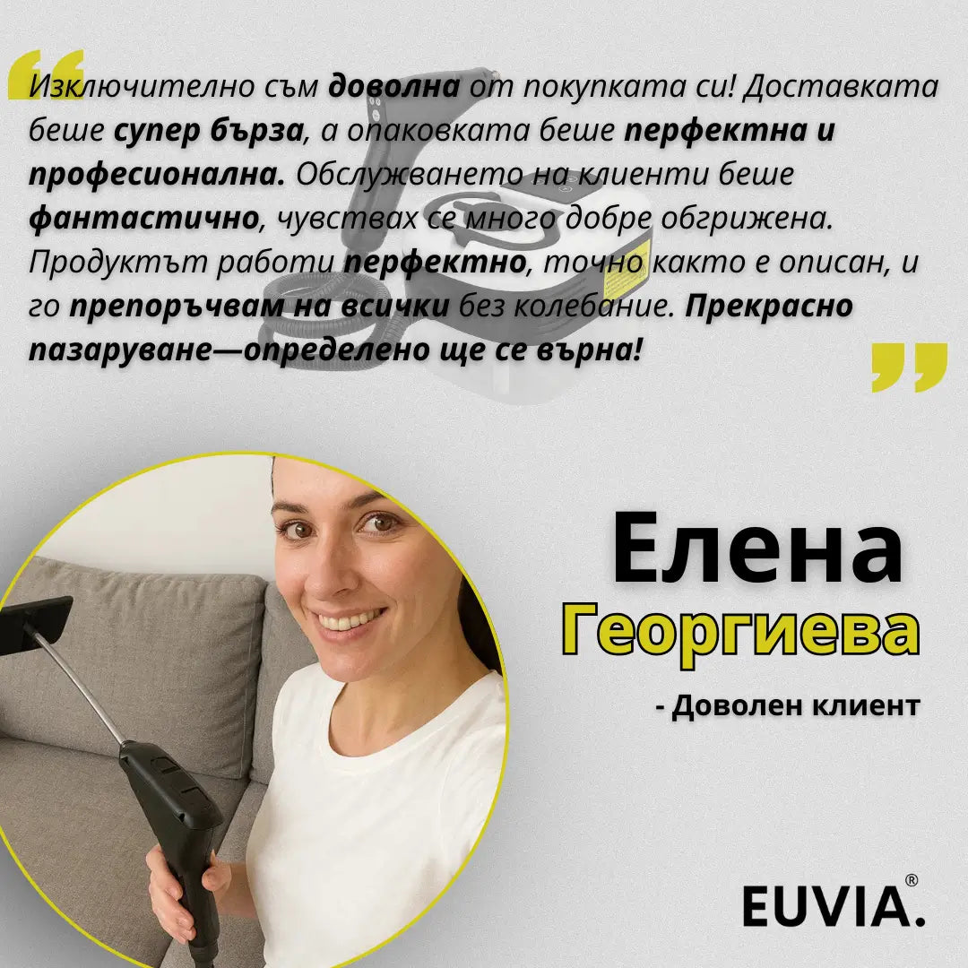 С SteamMaster2500X™ упоритите петна изчезват моментално, докато мощната пара прониква във всяка повърхност. Ергономичният дизайн прави почистването лесно, спестява време и оставя вашите мебели и кола да блестят. Не губете повече време—вземете SteamMaster2500X™ сега и вижте как повърхностите ви блестят!